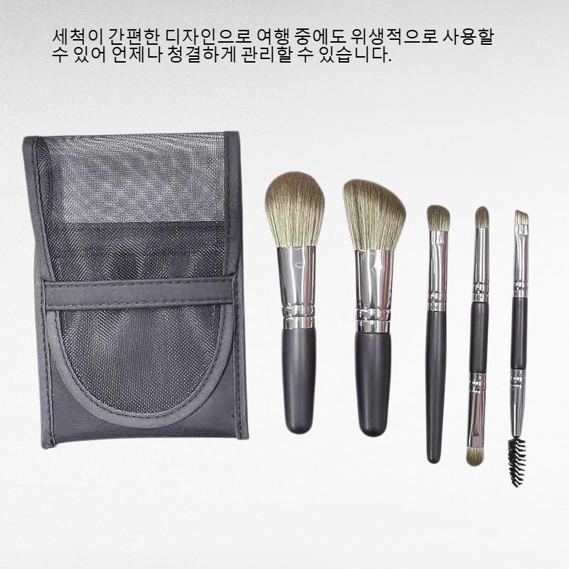 ● 여행 시에도 완벽한 메이크업을 도와주는 미니 5종 브러쉬 세트, 휴대용 파우치 포함으로 편리하게 보관 가능해요.
